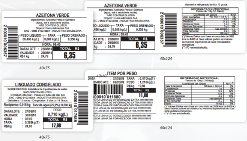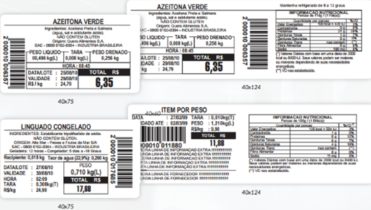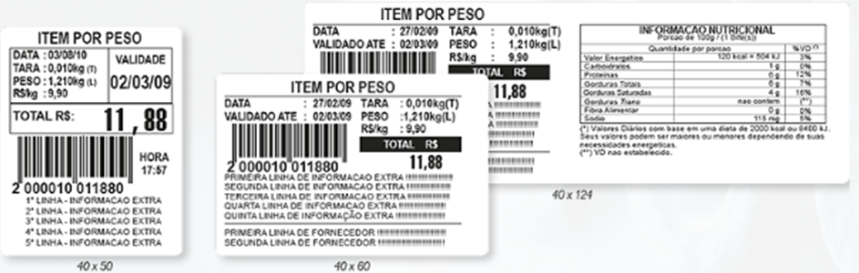 Complementam a identificação dos itens e permitem personalizar as etiquetas impressas com a logomarca ou nome do estabelecimento.